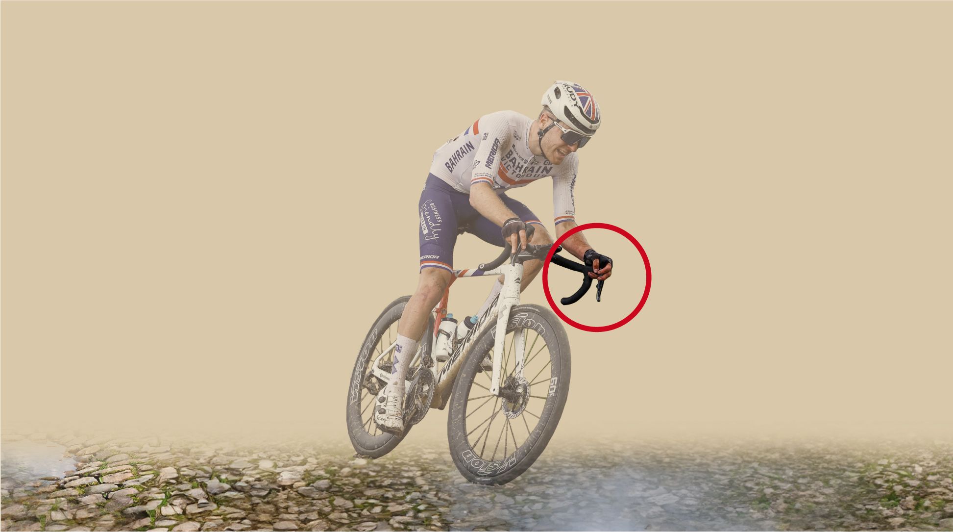 Conviene sujetar bien el manillar, pero no demasiado fuerte. Lo explica a la perfección Juan Antonio Flecha, el mejor español en la historia de la carrera. “No hay que agarrarlo fuerte, a pesar de que la primera sensación al pasar por adoquín es precisamente la contraria. El manillar tiene que saltar sobre tu mano, porque si no, toda la vibración la trasladas al cuello y a los hombros. De la otra forma, la vibración se queda en la bici. Hay que tener buenos cuádriceps e ir empujando la bici, dando pedaladas muy fuertes”.