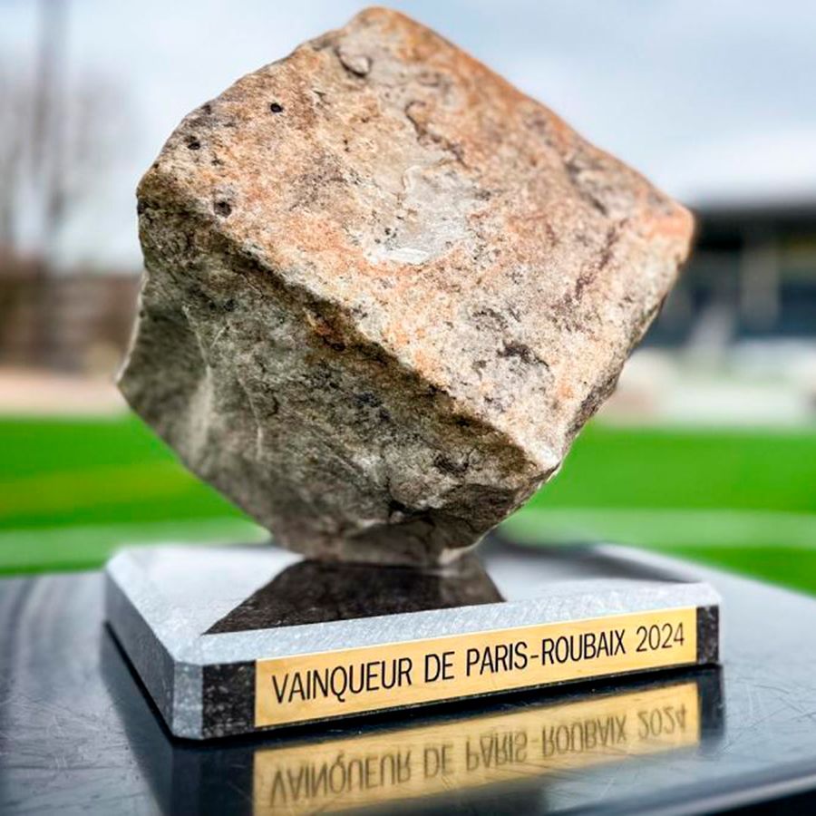 Después de la ducha, llega otro momento icónico: el ganador levanta su trofeo, un enorme adoquín de 15 kilos de peso, el premio que desde 1977 se entrega al ganador. Los aficionados pueden comprar una reproducción a menor escala en el bar del velódromo donde acaba la prueba.