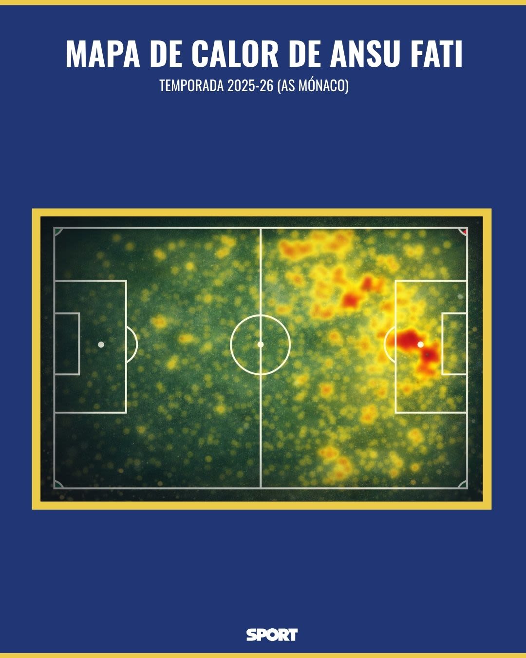 El pasado verano, se fue cedido al Mónaco. Tuvo un inicio fulgurante, pero no ha estado exento de problemas físicos. Su mapa de calor en el Principado lo confirma: Ansu ha sufrido una metamorfosis obligada.