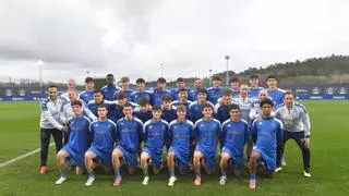 Los integrantes de la plantilla del Deportivo Juvenil A posan en Abegondo antes de afrontar la fase final de la Copa del Rey. / Carlos Pardellas