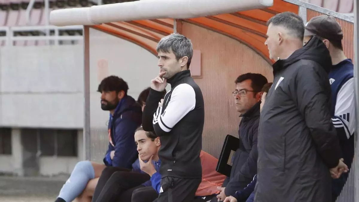 Vecho Ríos, segundo entrenador del Compostela, durante el partido ante el Alondras. / Antonio Hernández