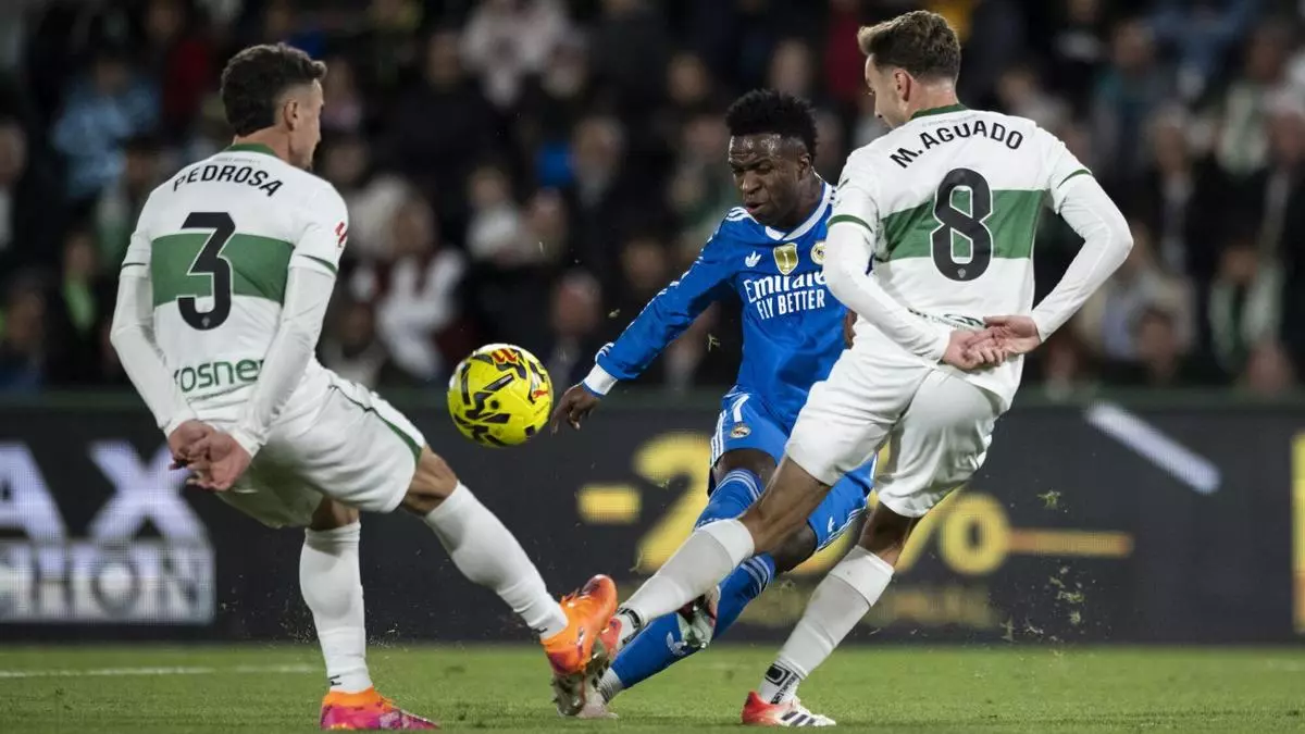 Vinicius Junior en una acción del Elche - Real Madrid de LaLiga 2025/26 / Europa Press